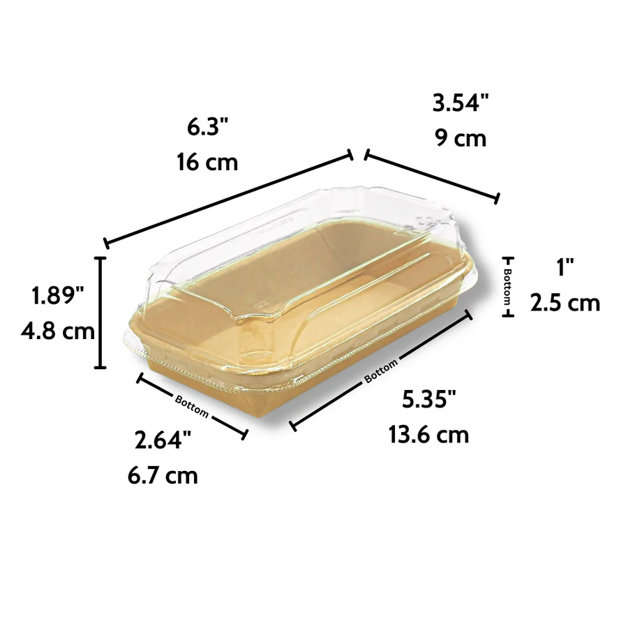 #1 Kraft Paper Tray with PET Lid - 6.30 x 3.54 x 1.89" - 400/Set