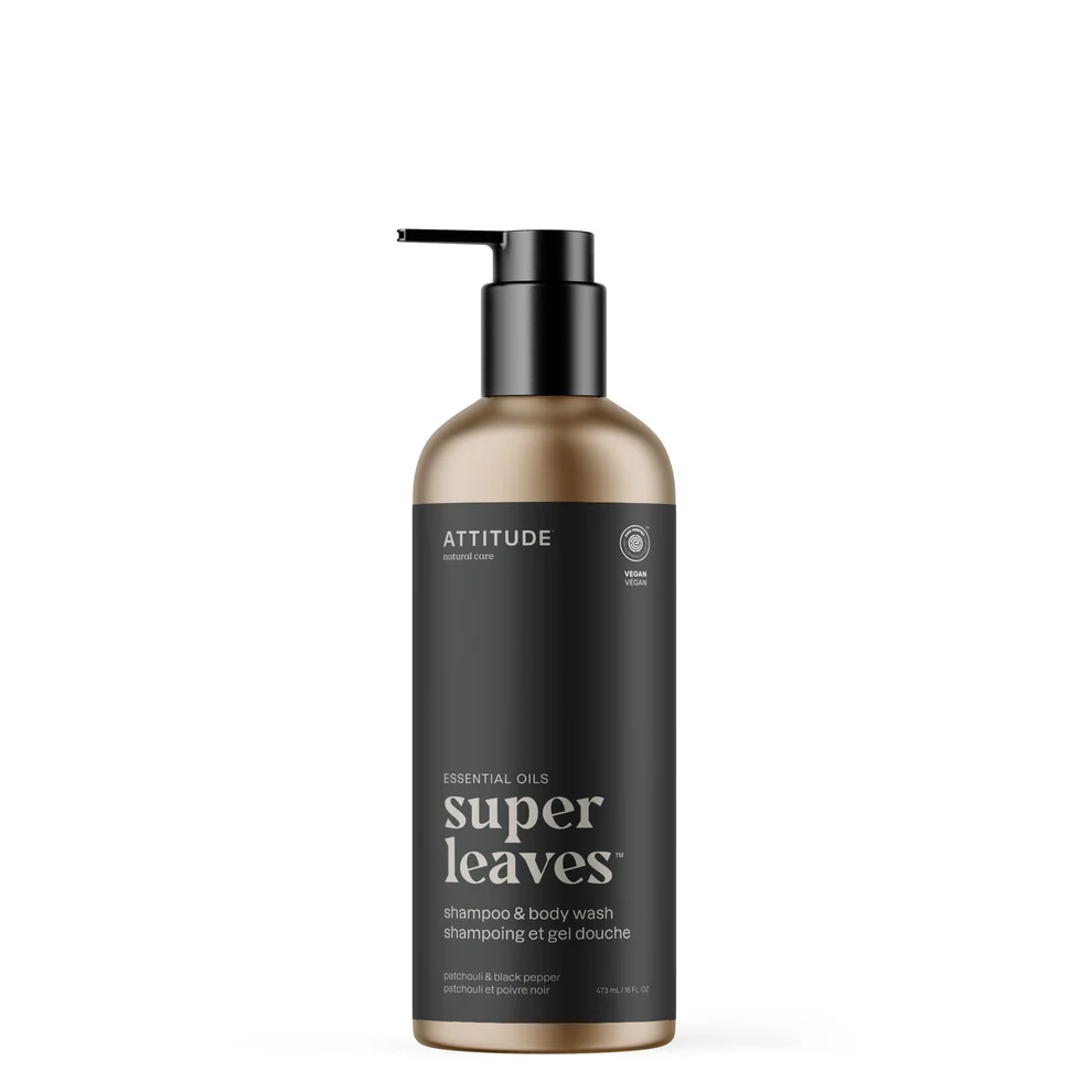 Shampoo & Body Wash : SUPER LEAVES™ | ESSENTIAL OILS - Patchouli and Black Pepper 473ml - Each