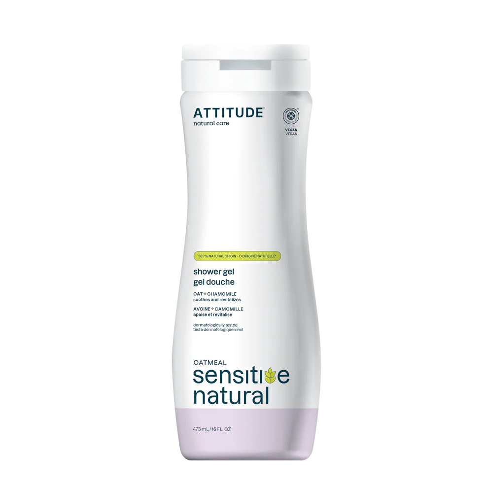 - Ease your way into the day and treat your skin and your senses with our comforting natural ATTITUDE’s Sensitive Skin Shower Gel. This lathering shower gel blends soothing ingredients and is enriched with oatmeal, so you can be kind to your skin while gently cleansing away impurities. This floral-scented shower gel is crafted with EWG VERIFIEDTM, and dermatologically-tested ingredients to provide your skin with a burst of radiance. The result is a feeling of calm that will linger long after you leave the shower.