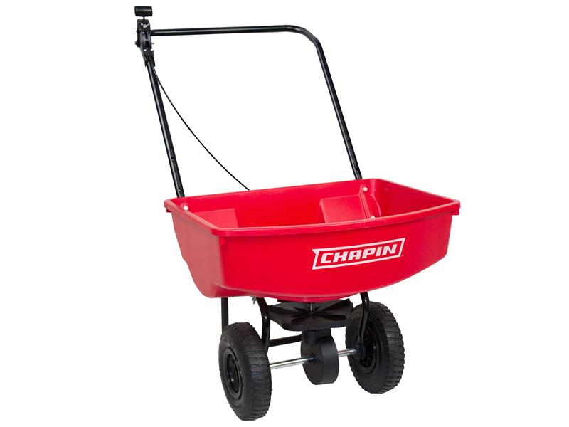 Designed specifically for homeowners. Chapin’s 8001A residential broadcast turf spreader has a 70-pound capacity weather-resistant poly hopper. It sits on a powder-coated steel frame and the gears are enclosed so they’re protected from the elements. It’s easy to push with an ergonomic bail system and quick, flip-up U-shaped handle. Easily choose the right setting for your preferred brand of fertilizer or seed with the rotary gat. This unit not recommended for use with sand and sand mixes. Made in the USA with global materials and backed by Chapin’s 1-year limited warranty.