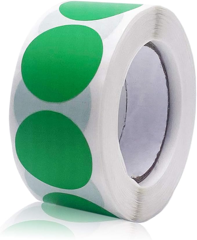 Green Colour Dot Circles 1" Diametre with 500 labels per Roll - Each