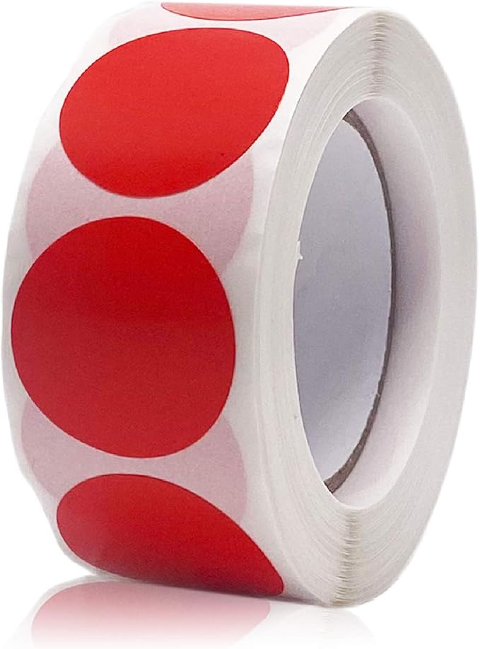 Red Colour Dot Circles 1" Diametre with 500 labels per Roll - Each